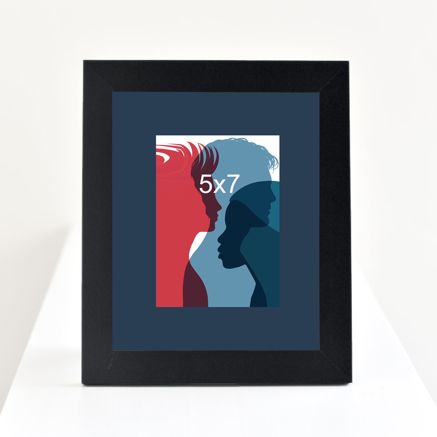 A  5x7 to 8x10 Langford frame which holds a 5x7 photograph with a 5x7 to 8x10 Langford frame with Academic BLUE Matte. Perfect for that art gallery look.