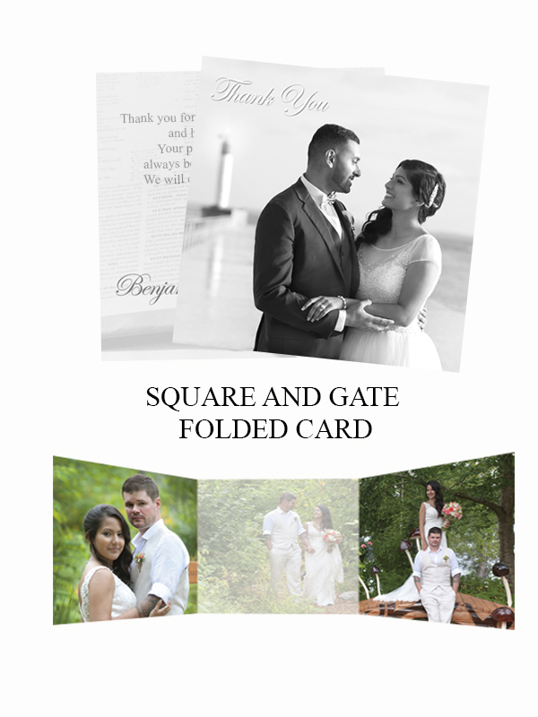 Perfect for sending friends, family and guests a special thank you. All of our cards are custom designed with your image selections. We will email you a proof for approval and then print, in-studio, in quantities starting at 50. The size for this layout is 6x6 and 6x18.